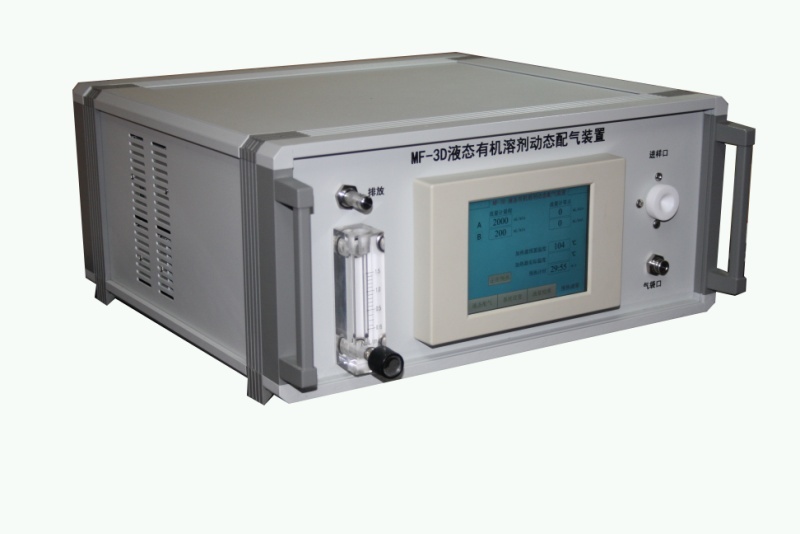 2.1 MF-3D的主要功能:可将液态有机溶剂自动进行配制成任意单点浓度,根据需要配出的气体可静态使用,也可动态使用;